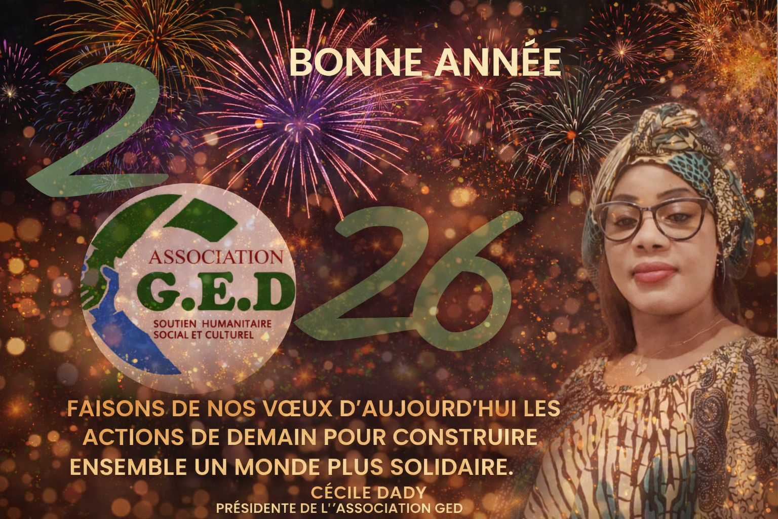 Cécile Dady, présidente de l’association GED, ainsi que toute son équipe, vous présentent leurs vœux les plus chaleureux pour une année 2026 placée sous le signe de la solidarité, du partage et de la générosité.